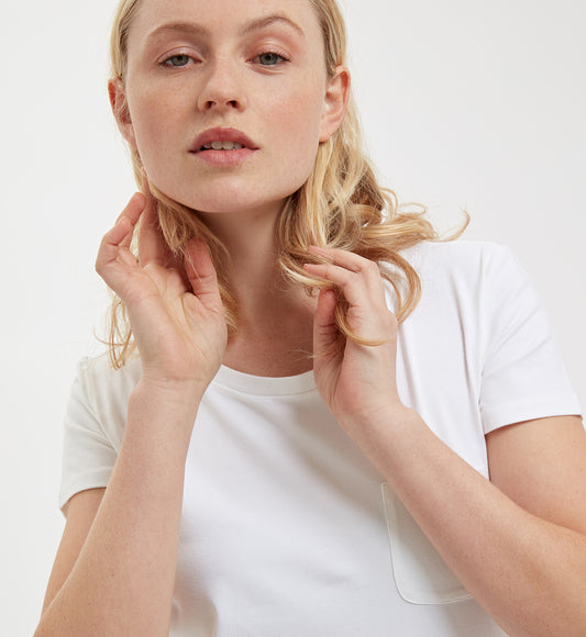 Our classic women's round neck, short-sleeve t-shirt is a timeless wardrobe staple.